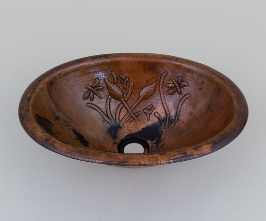 Premium Copper Oval Bath Sink Bouquet Design