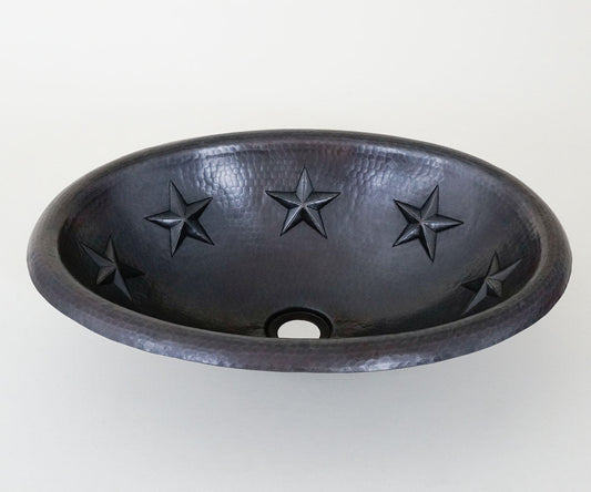 Premium Copper Oval Bath Sink Stars Design