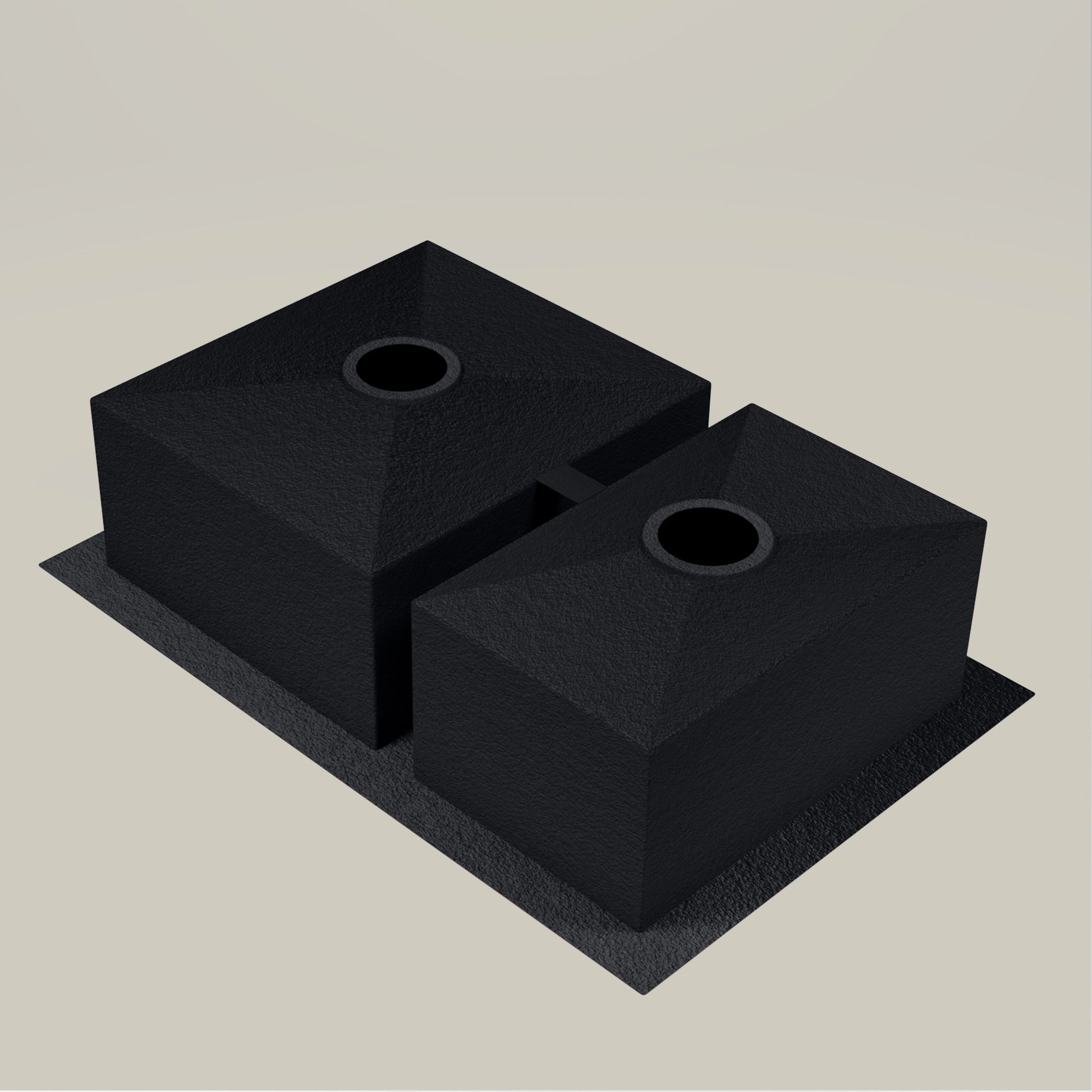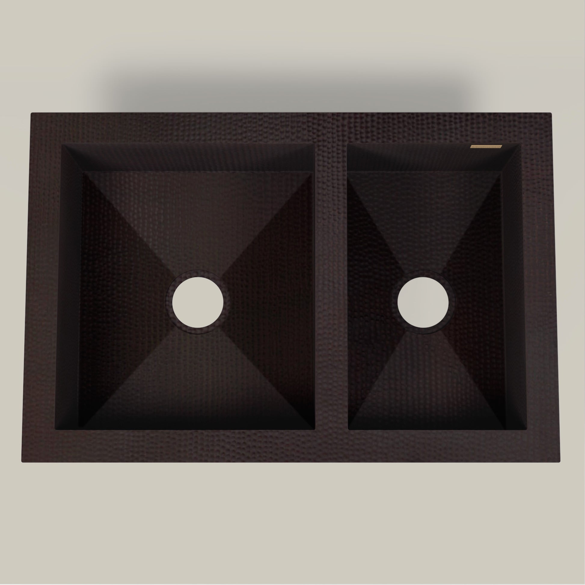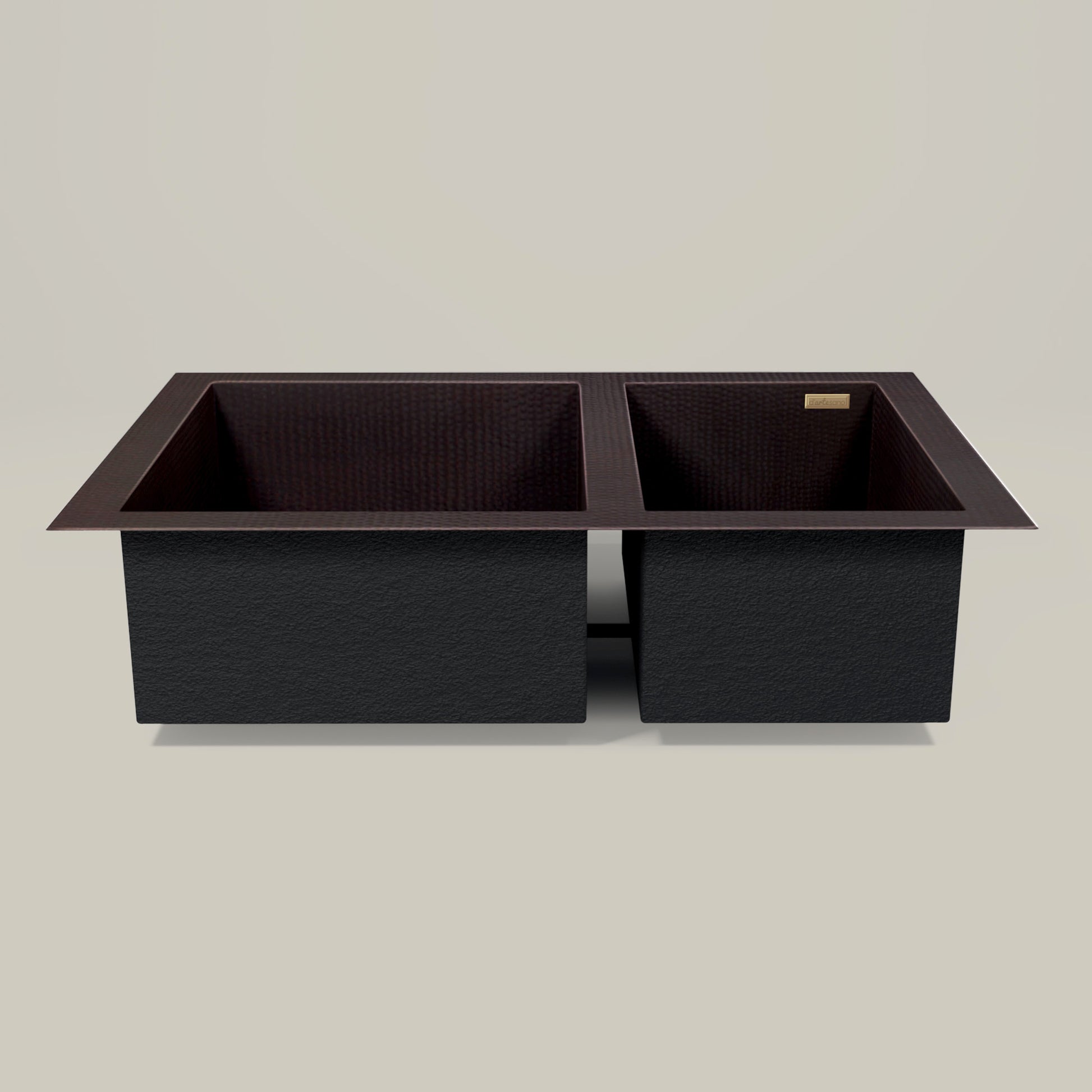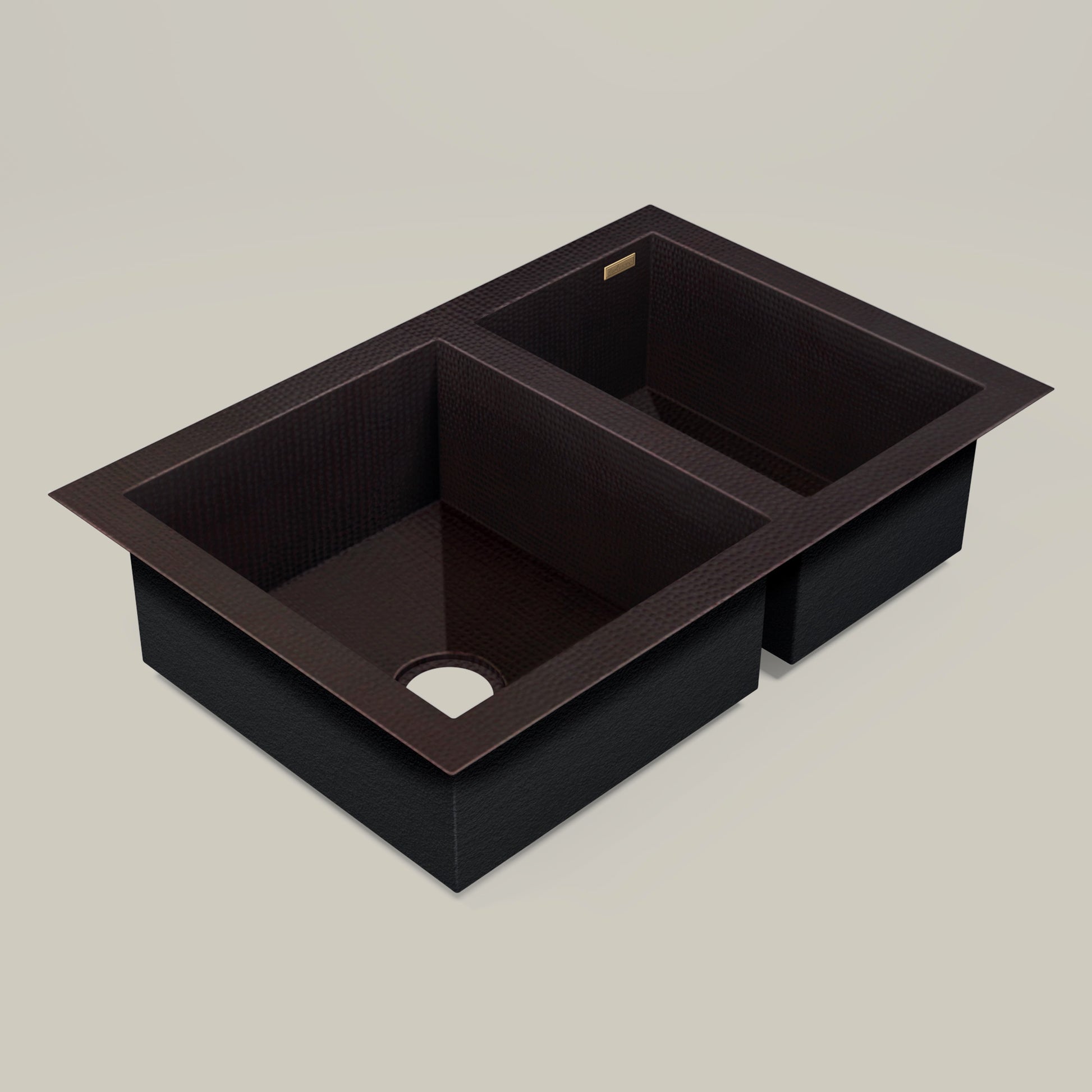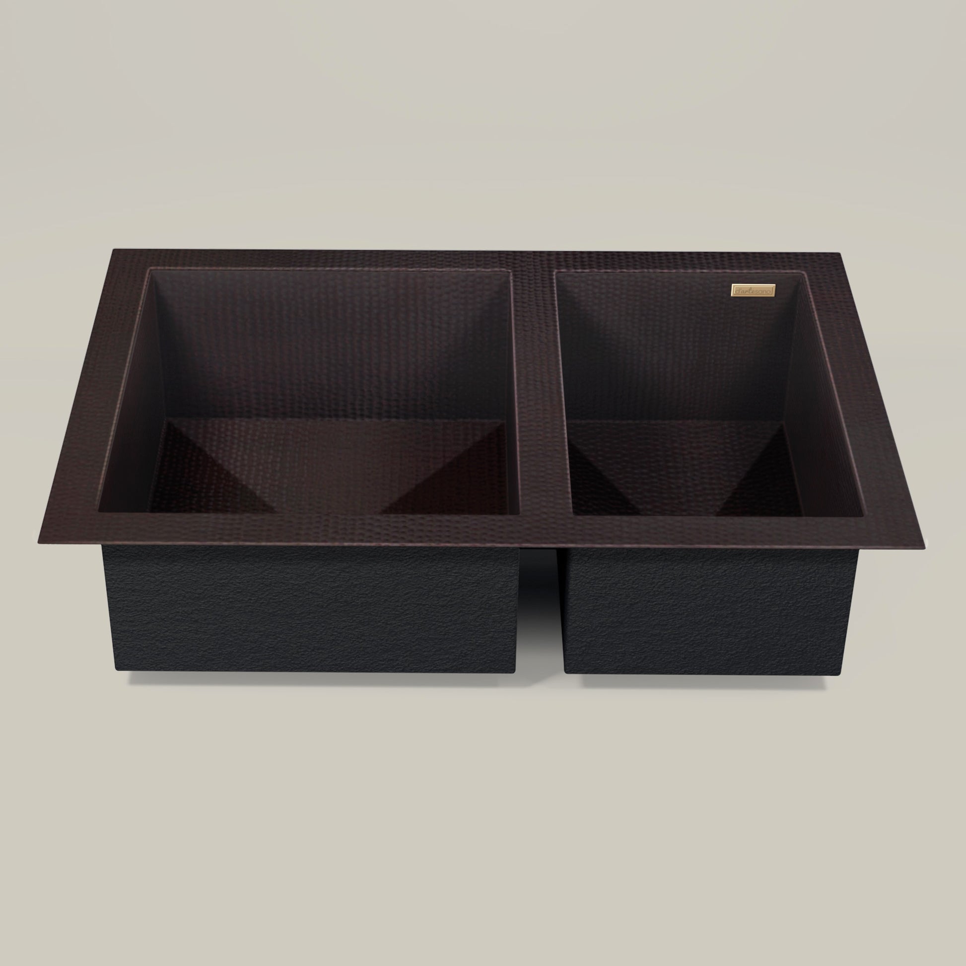 Sink with two drawers and tabs for mounting on the kitchen bar. The copper sink features two drawers of different sizes for better organization.